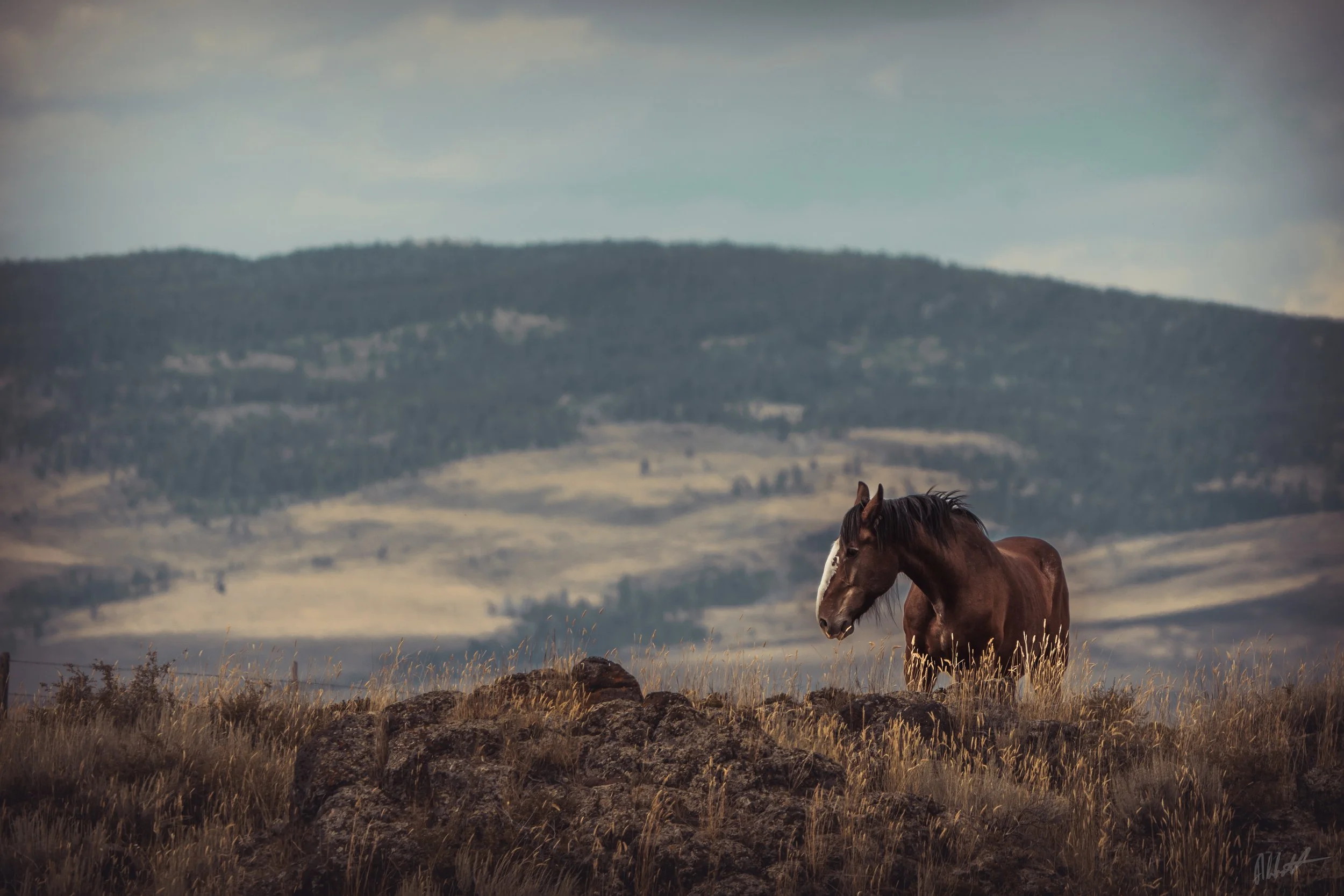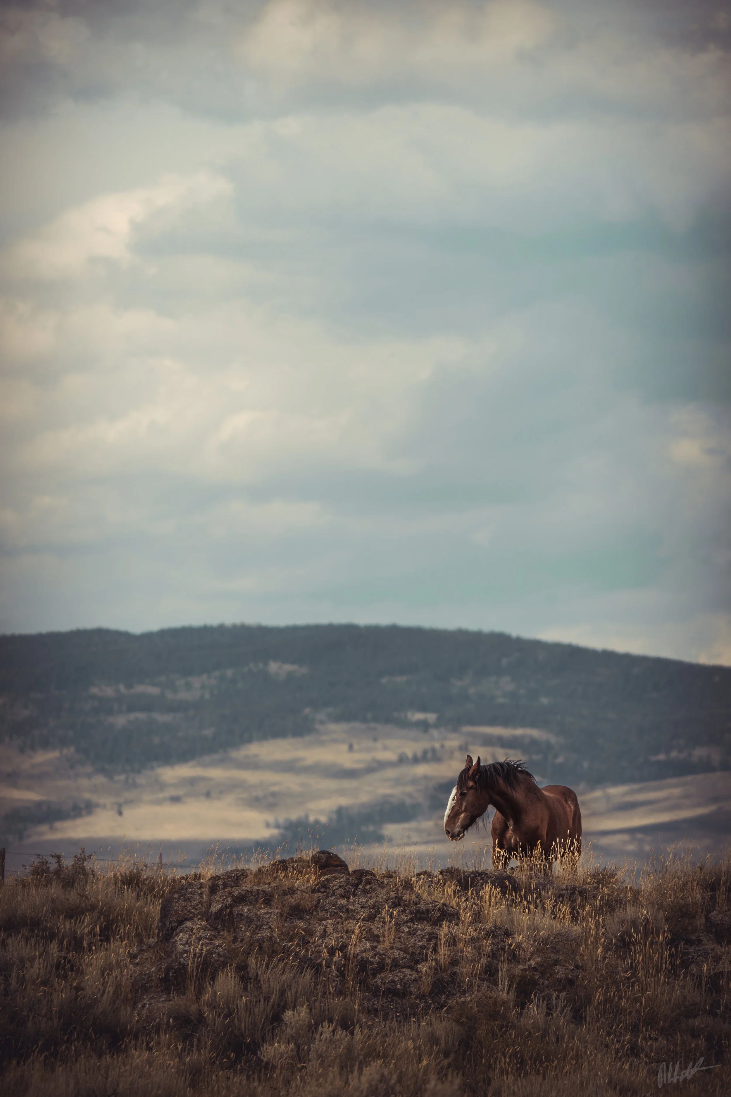 One of those moments was at a rest stop somewhere in southern Idaho at a rest stop. As I pulled up I noticed a figure up on top of a little hill just past the rest stop. I really had to go... so I didn't think much of it. After taking care of business and with an undistracted mind, I walked out of the building and noticed the figure again. At first I couldn't totally make out what it was, but as I got closer I realized it was a horse. A big horse.